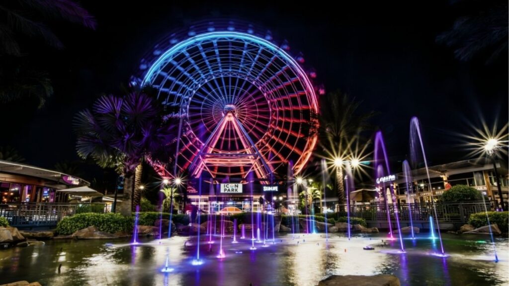 Um dos cartões-postais da International Drive, o Icon Park abriga a famosa roda-gigante The Wheel, com vista panorâmica da cidade. O complexo reúne ainda restaurantes, bares, lojas e atrações para todas as idades, sendo ideal para passeios diurnos ou noturnos.