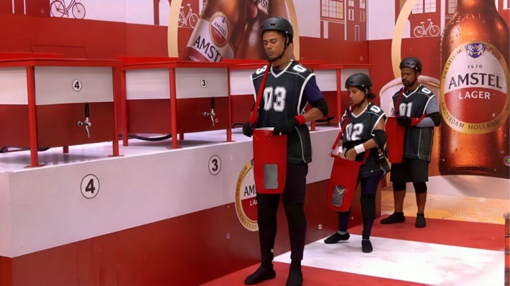 - Na sequência, atravessou uma ponte coberta de espuma e, ao final do trajeto, encontrou o parceiro para transferir o conteúdo da bolsa e dar continuidade à dinâmica.