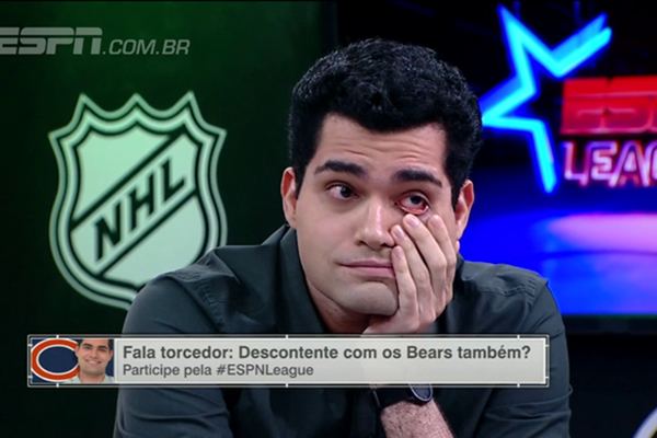 Depois, irritado com as falhas de Mitchell Trubisky, quarterback dos Bears, time pelo qual Curti (foto acima) torce, Nardini pediu ao comentarista para ler o horóscopo do dia do atleta, o que foi feito aos risos.