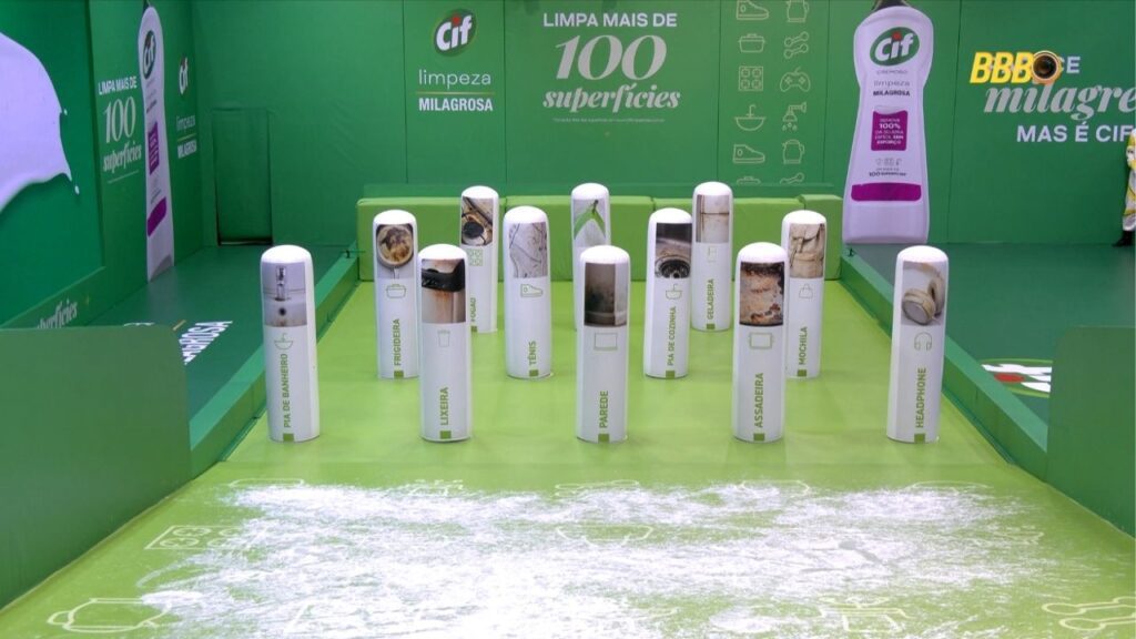 - Juliano Floss derrubou 6 pinos: Frigideira (15), Lixeira (7), Chinelo (7), Fogão (24), Tênis (9) e Parede (24). No total, o brother marcou 86 pontos