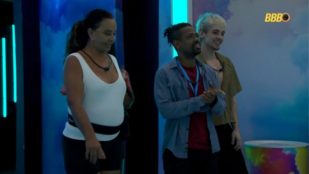 - Enquanto conversam sobre o jogo, Boneco chama o grupo “Trindade” de “Triângulo das Bermudas” e tira gargalhadas dos colegas presentes no almoço; Juliano diz que vai espalhar o apelido pela casa