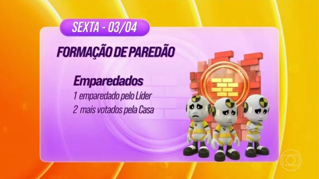 Ainda na sexta, durante o programa ao vivo, será formado um novo Paredão triplo.