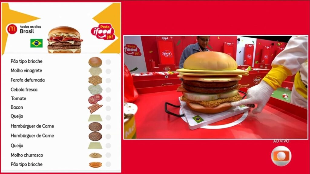 O gabarito da montagem do lanche foi divulgado somente para os jogadores durante a disputa, conforme a imagem acima.