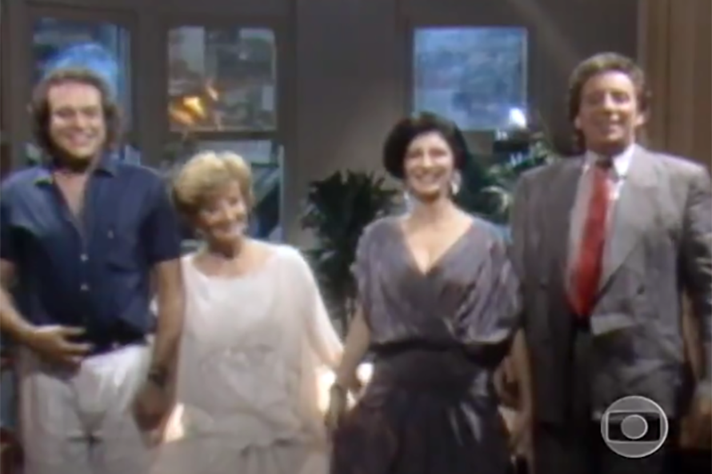 Os casais se beijam e a parede que os separa cai. O elenco aplaude e a novela termina com uma confraternização entre todos os artistas.