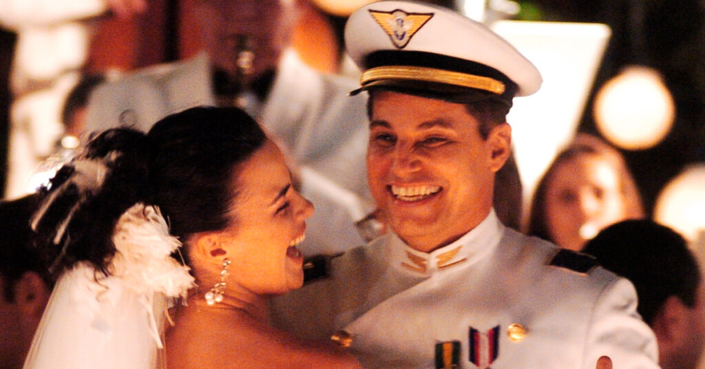 O rapaz é militar e se casa com Olívia (Ana Paula Arósio) de farda, em cerimônia religiosa, tudo bem convencional.