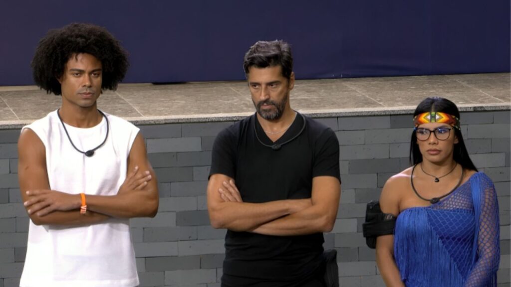 Estão na disputa pelo paredão falso do BBB 26 os seguintes participantes: Alberto Cowboy (indicado pelo exilado Breno), Jordana (indicada pela Líder Samira) e Breno (contragolpe de Jordana).
