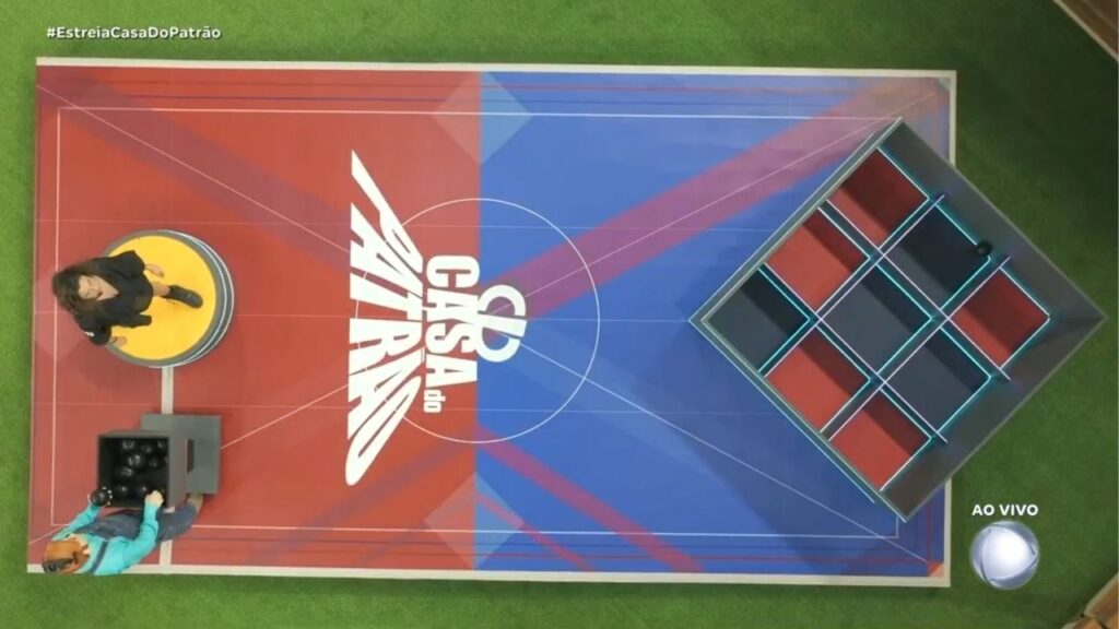 Um por vez, de acordo com a ordem sorteada, os participantes precisavam atirar bolas dentro de uma caixa com subdivisões em vermelho e azul.