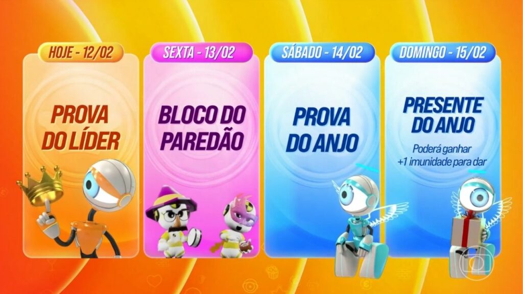 Na sexta (13), acontece a nova dinâmica chamada Bloco do Paredão. Por meio de um sorteio, os participantes escolhem acessórios carnavalescos que escondem consequências importantes: troca entre VIP e Xepa, veto de voto, imunidade e até indicação direta ao Paredão. Algumas decisões precisarão ser tomadas em consenso, o que pode gerar ainda mais tensão na casa.