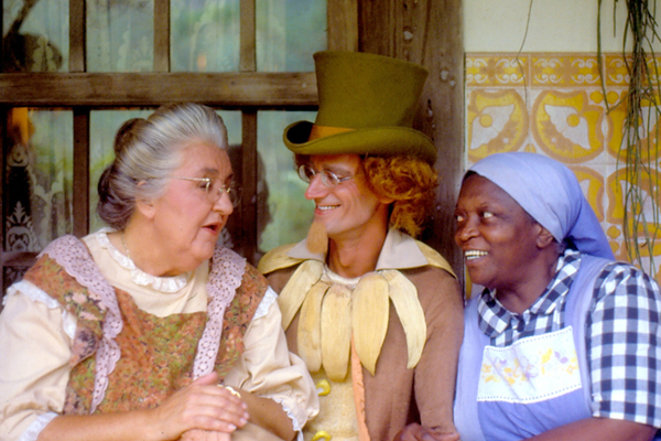 Logo após o Hoje (13h) – naquela tarde apresentado por Marcos Hummel, Nelson Motta e Sônia Maria – a Globo reapresentava Escrava Isaura. Obra-prima de Gilberto Braga, baseada no romance de Bernardo Guimarães, a trama chegou ao fim, às 18h, em 5 de fevereiro daquele ano, retornando em 29 de agosto, às 13h30. Na foto acima, as duas protetoras de Isaura (Lucélia Santos): Ester (Beatriz Lyra), mãe do vilão Leôncio (Rubens de Falco), que deu à escrava afeto e educação e que, no leito de morte, decide emancipá-la; e Januária (Zeni Pereira), antiga criada da fazenda, que auxilia a menina a realizar seu sonho de liberdade, após o cruel senhor queimar a tal carta de alforria.