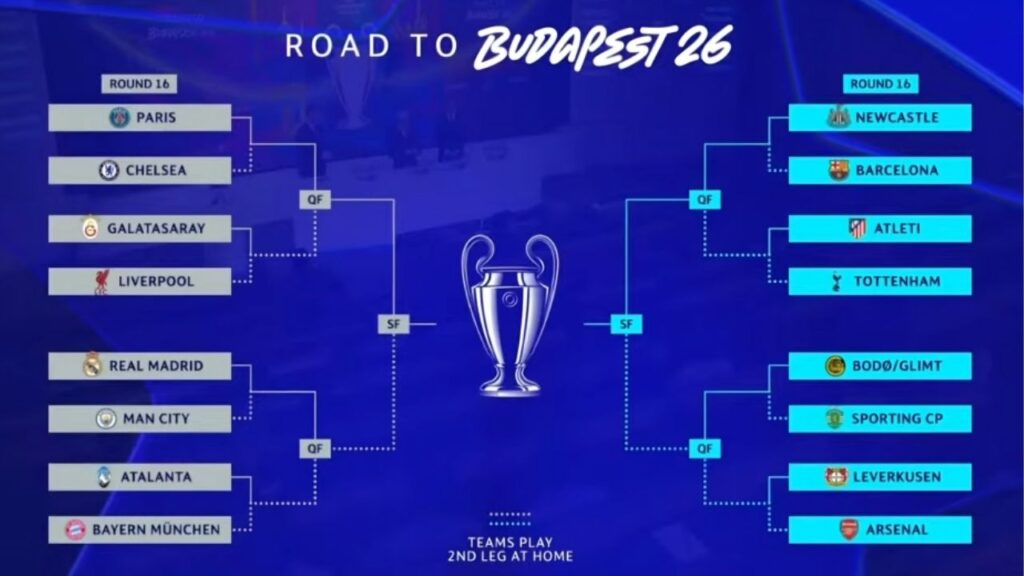 O sorteio das oitavas de final da Champions League foi realizado nesta sexta (27). Além de definir os confrontos da próxima fase, a cerimônia também estabeleceu todo o chaveamento até a decisão, indicando os cruzamentos das quartas de final e das semifinais.