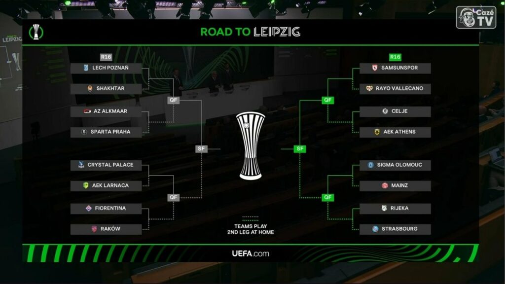 O sorteio das oitavas de final da Conference League foi realizado nesta sexta (27). Além de definir os confrontos da próxima fase, a cerimônia também estabeleceu todo o chaveamento até a decisão, indicando os cruzamentos das quartas de final e das semifinais.