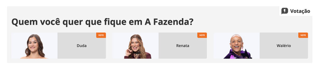 - Vote quantas vezes quiser – diferente de outros realities, a votação de A Fazenda não limita o número de participações por pessoa. É possível votar ilimitadamente, basta repetir o processo.