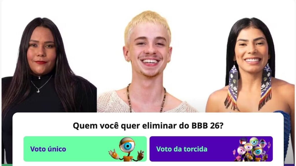 O BBB 26 teve uma mudança no formato de votação: o voto único, que é atrelado do CPF, ganhou mais poder, com peso de 70% na definição. Já o peso do voto da torcida, em que se pode votar quantas vezes quiser, passa a ser de 30%. O resultado, portanto, será a média ponderada dos dois formatos.