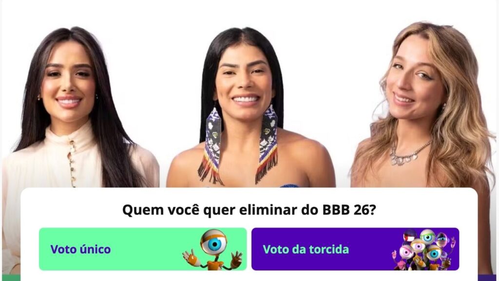 O BBB 26 teve uma mudança no formato de votação: o voto único, que é atrelado do CPF, ganhou mais poder, com peso de 70% na definição. Já o peso do voto da torcida, em que se pode votar quantas vezes quiser, passa a ser de 30%. O resultado, portanto, será a média ponderada dos dois formatos.